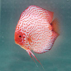 Alimentazione: La dieta deve essere varia e ricca, somministrando un paio di volte al giorno in dosi non eccessive: cibi surgelati a base di Artemia, Chironomus, Krill, pastone a base di cuore di tacchino. Particolarmente indicato il cibo surgelato della ditta Ruto, nella variante addizionata con aglio di cui sono ghiotti i nostri Discus. L'aglio è un componente importante della loro dieta in quanto funge da antiparassitario naturale. Alcuni cibi surgelati della Ruto contengono anche astaxantina (pigmento naturale che accentua la colorazione della livrea) e Terminalia catappa (pianta con proprietà curative contro parassiti, batteri e funghi).